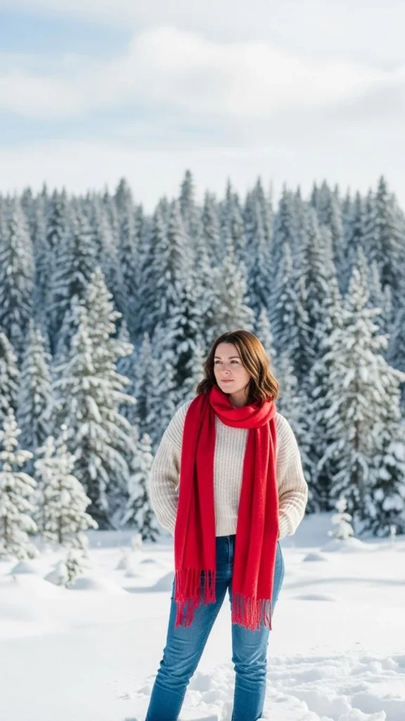 Sometimes all you need is an accent piece. A red scarf can transform even a plain outfit. Pair it with a beige or gray sweater and jeans.