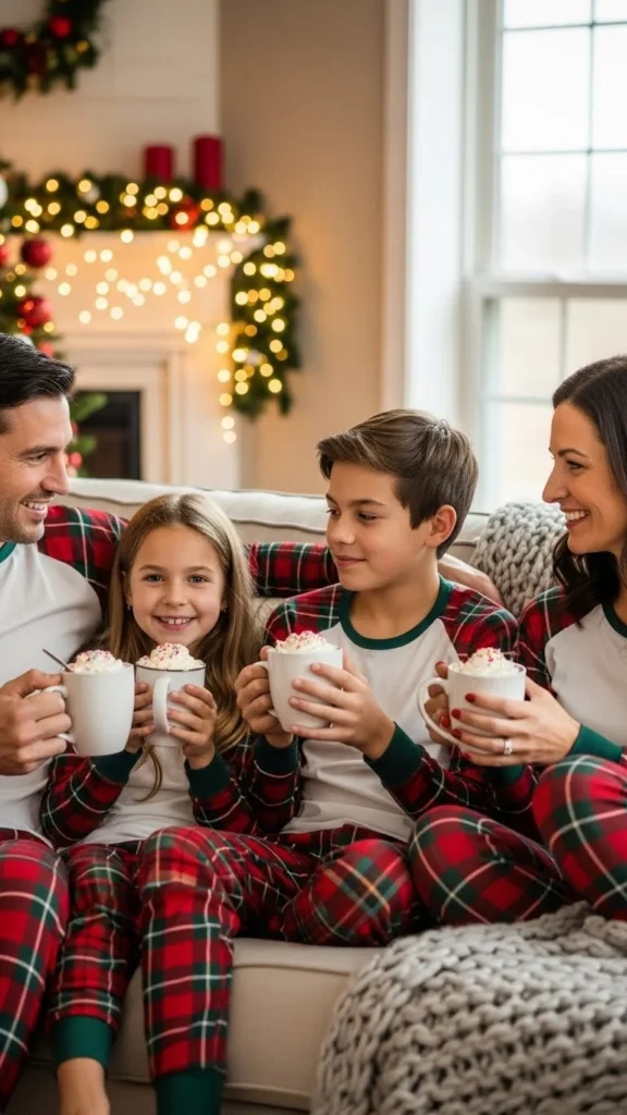 Nothing screams “Christmas morning” like matching pajamas. Choose soft cotton or flannel sets in red plaid or reindeer prints. These are ideal for opening gifts or snapping those cute early-morning photos.
