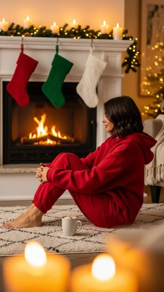 Add some fun socks and a Santa hat for photos. Super cozy, zero effort, and ideal for staying comfy all day.